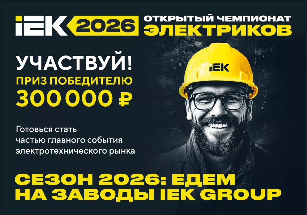 Совсем скоро стартует Чемпионат электриков IEK — 2026. Мы переосмыслили формат соревнований и в этом году покажем участникам мощь отечественного производства электротехники: полуфиналисты посетят крупнейшие промышленные центры IEK GROUP! Что нового в этом сезоне? Что не изменится? Сильные участники и классные призы! Что делать прямо сейчас? Регистрируйся на бизнес-платформе IEK и готовься стать частью одного из главных событий электротехнического рынка! Отборочный этап включает в себя 2 задания в онлайн-формате: […]