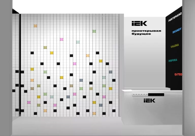 Стенд IEKБренд электротехники – не экспозиция, а живая инсталляция. Динамичная стена представляет коллекцию FLITE как модульную систему. Механизмы не «стоят на полке» – они становятся продолжением стены, демонстрируя главный принцип: электроустановочное изделие не прерывает пространство. Оно его завершает.