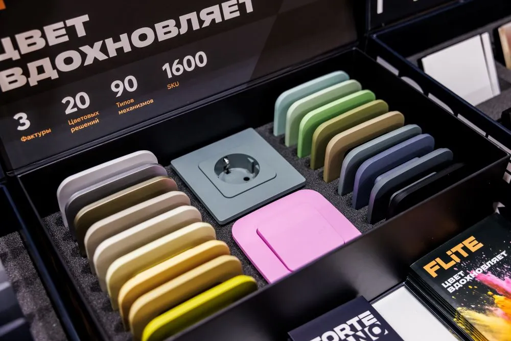 Событием стал стенд с электроустановочными изделиями ― здесь посетители могли увидеть сразу все линейки, которые выпускаются под брендом IEKБренд электротехники. Розетки и выключатели FORTE&PIANO из металла превратились в элемент декоративной вращающейся стены, цветным акцентом стала новинка 2026 года коллекция FLITE. Любителей классики ждали популярные BRITE и SKANDY, а также IEKБренд электротехники ETIKA, IEKБренд электротехники VALENA, IEKБренд электротехники INSPIRIA, QUTEO, которые ранее для российского рынка производила французская компания Legrand.