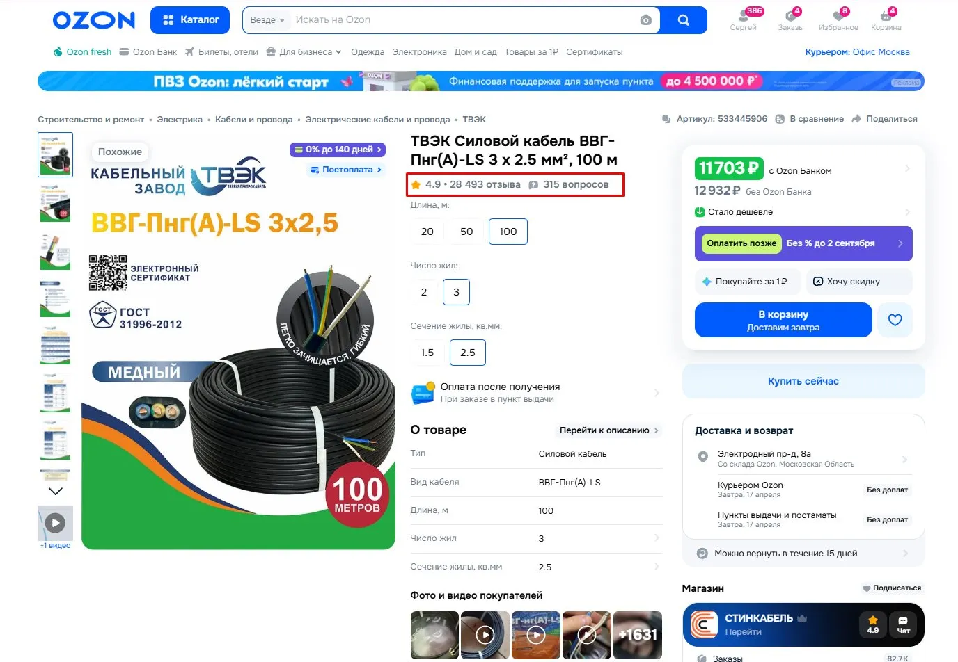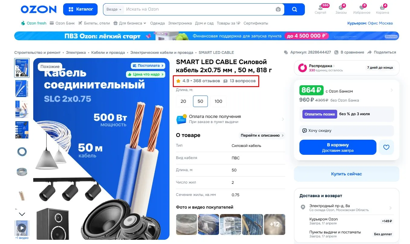 На этом фоне марка TOKOV ELECTRIC, за которой стоит мощный дистрибьюторский ресурс, выглядит аутсайдером: минимальное число отзывов даже самых популярных марок, несмотря на то, что по цене продукция часто ниже, чем более популярные бренды. Это прямое доказательство того, что «наличие на полке» больше не гарантирует рыночного успеха во всех сегментах. Потребитель научился обходить навязанные фильтры. Всего в ассортименте ОЗОНа представлены сотни селлеров и кабельных брендов, многие из которых регулярно попадают под проверки EL-комитета НОПСМ, который постепенно «вычищает» их с кабельного рынка, но никто и никак не может «вычистить» МастерТока, который уже больше 15 лет продает кабели и провода «бм». Многие пытались. Ни у кого не получилось. Об этом ранее писали в статье “АЧП-терроризм” побежден? Счет 3:0 в пользу кабельщиков. СЗМТУ Росстандарта может дорого заплатить за действия “псевдорегулятора» на RusCable.Ru.