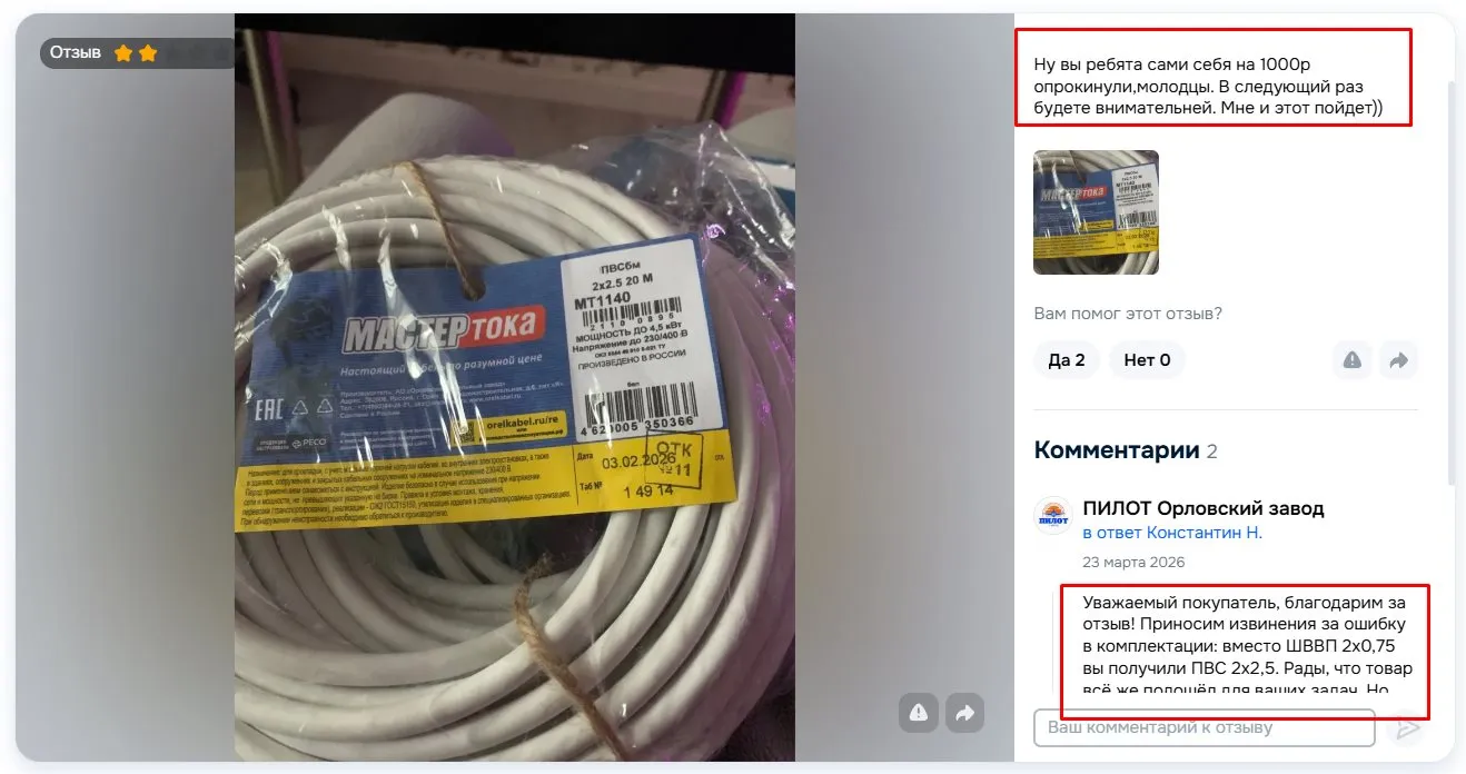 Финальный вопрос к лидерам кабельного рынка открыт. Готовы ли бренды к выживанию в среде, где главным инструментом оценки стал не сертификат в каком-то реестре на вечнозависающем сайте ФСА, а отзыв реального покупателя с фоткой настоящего товара на маркетплейсе? Если вы не понимаете, почему обычный покупатель ставит 5 звезд кабелю за «белый порошок» и «длина как заказывал», возможно, вам просто не надо даже пытаться работать в бытовом сегменте кабельной продукции. Продавайте системным потребителям, мучайтесь с рассрочками, просрочками и госконтрактами, работайте с Россетями, РЖД, Росатом и всеми остальными, но не пытайтесь правила одного рынка перенести на другой сегмент.